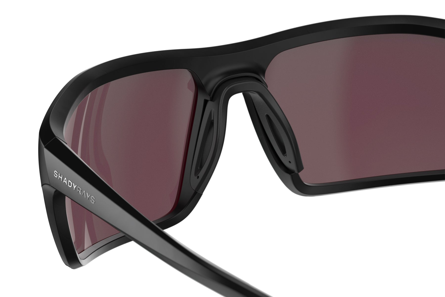 Lightweight sport wraparound design with flush mount lenses for full peripheral vision and unobstructed views.