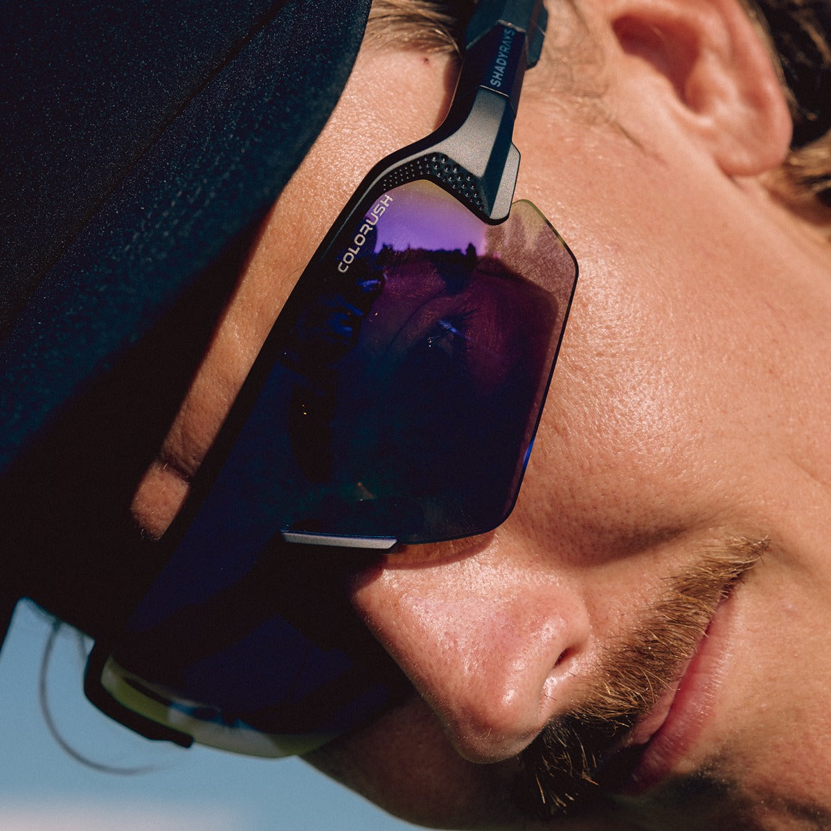 Color-enhancing premium semi-polarized mirrored Glacier lenses with purple tint: 100% UV protection / shatter-resistant / anti-scratch / anti-saltwater / premium hydrophobic and oleophobic coatings / VLT 22%