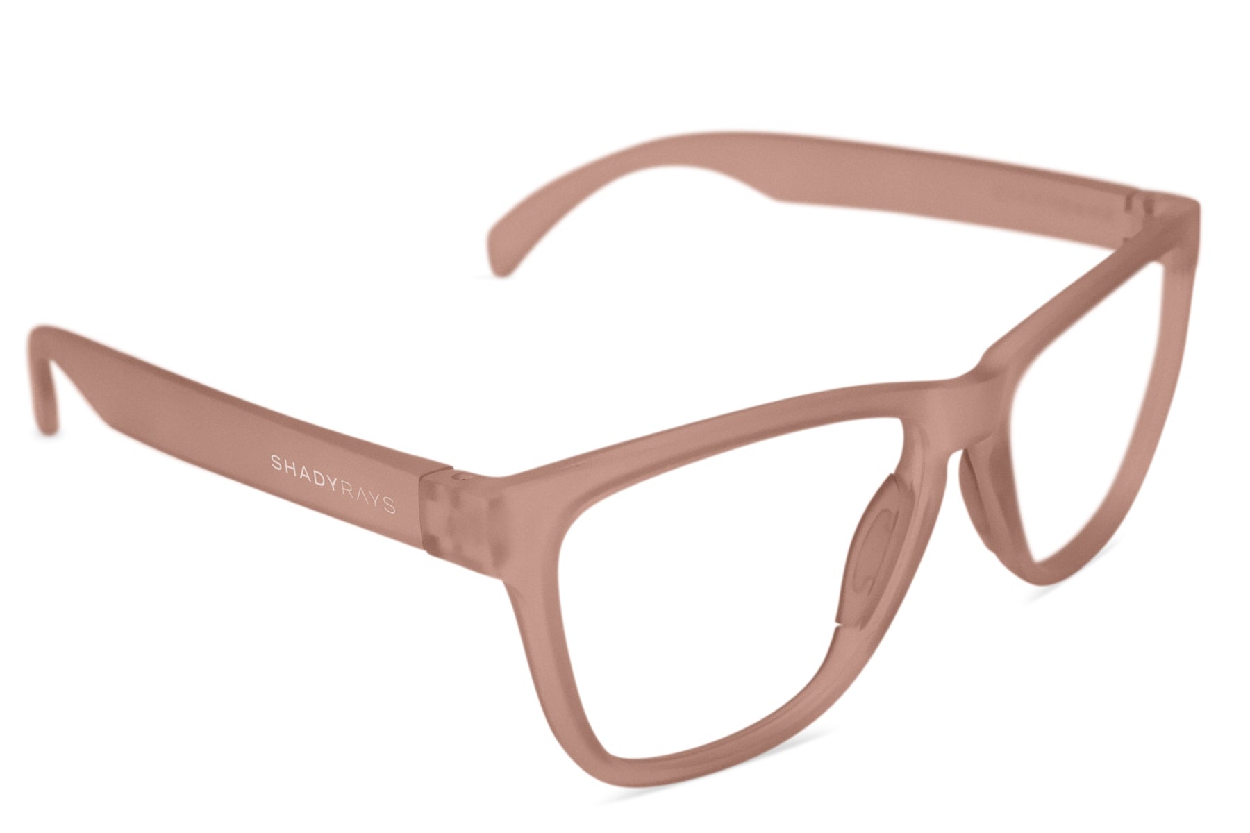 A versatile, transparent peach frame for active or casual use, with rubber nosepieces and snap hinges, complete with prescription lenses custom-made for you in our US-based optical lab. Includes signature hard case.