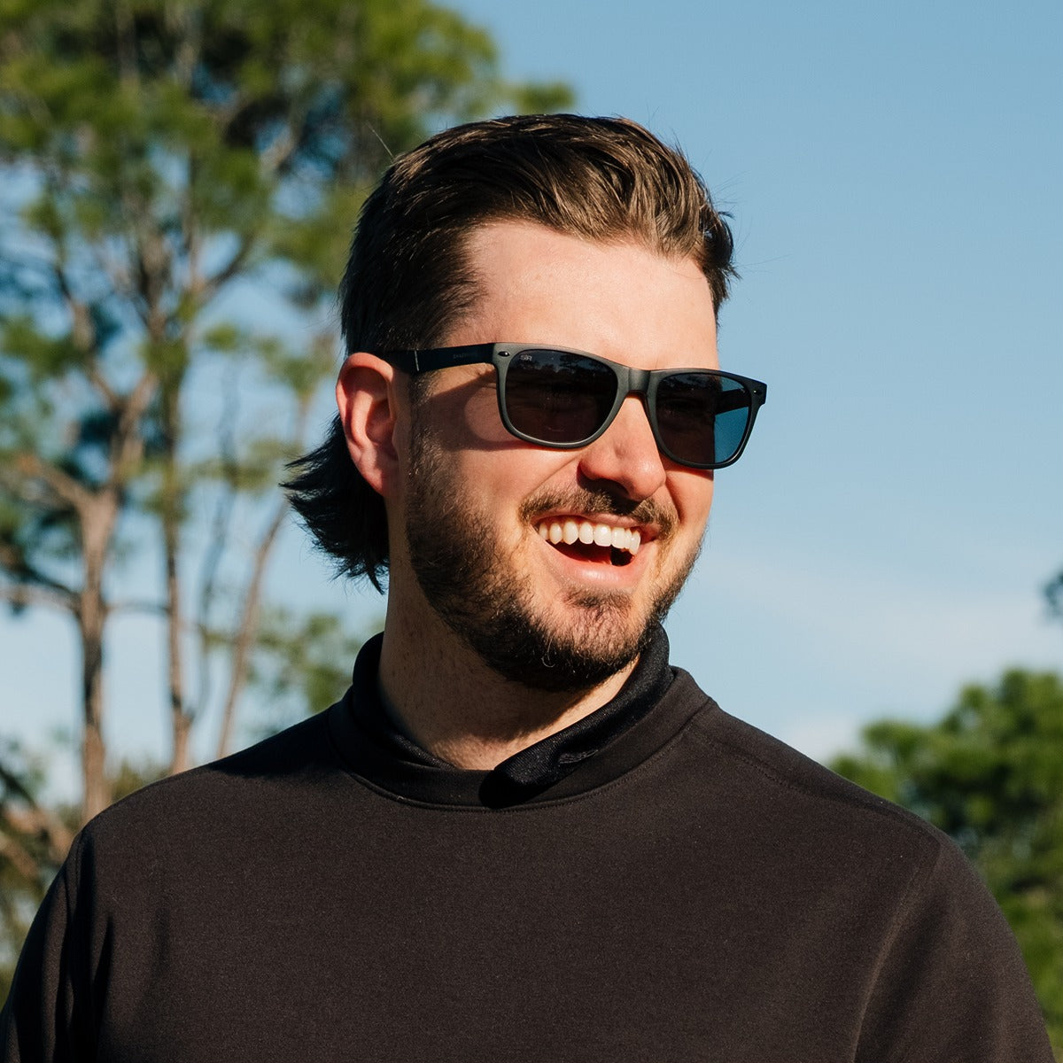 Semi-polarized black lenses with grey tint: 100% UV protection / shatter-resistant / anti-scratch / anti-saltwater / premium hydrophobic and oleophobic coatings / VLT 16%