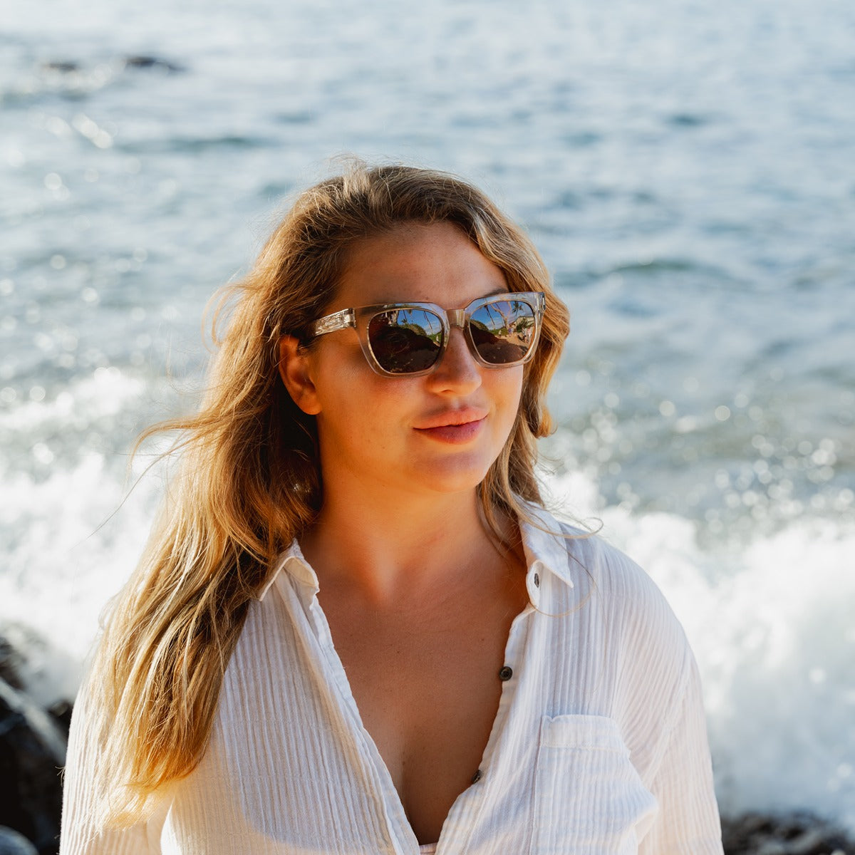 Polarized amber non-mirrored lens with bronze tint, and shatterproof, anti-scratch lenses
